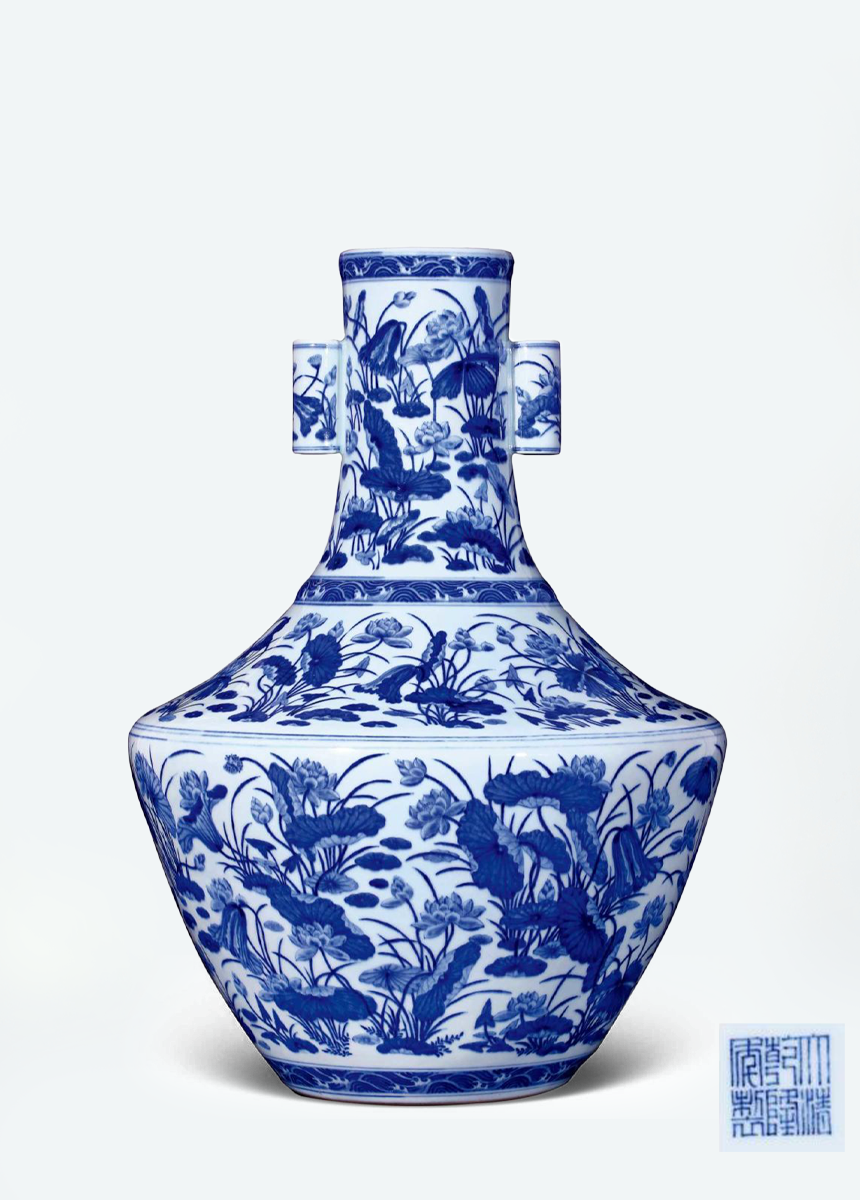 藏 品:清乾隆 青花蓮紋大貫耳壺