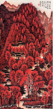 · 生機盎然的點睛之筆:在雪山腳下,幾株松樹挺拔而立,不僅穩定了畫面構圖,更象徵著不屈的生命力。而點綴其間的一抹紅葉,猶如冰天雪地中的溫暖火焰,為整幅作品注入了盎然生機,體現了畫家“於無聲處聽驚雷”的藝術匠心。