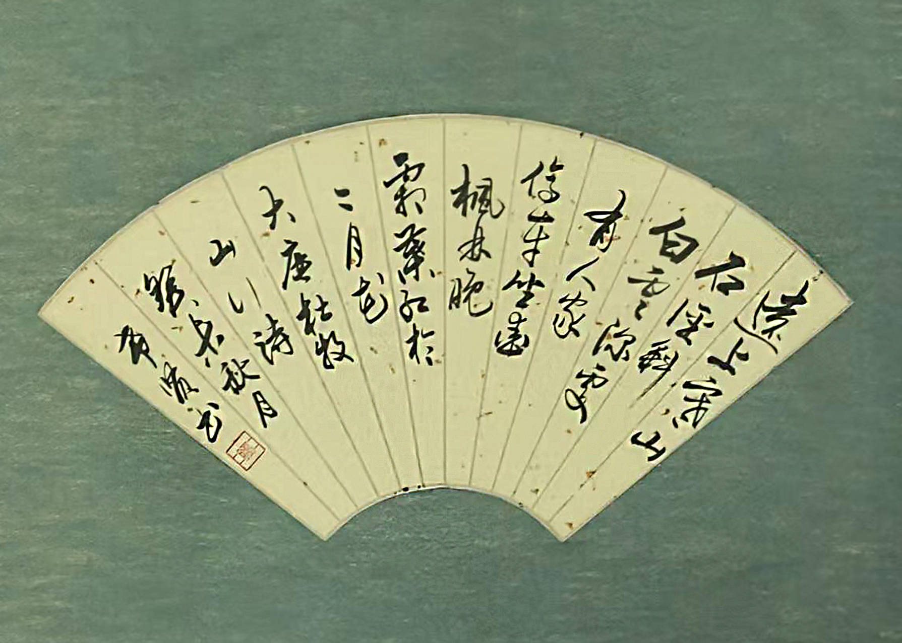 詩之魂:扇面以行草精寫唐代詩豪杜牧千古名篇《山行》。詩中“遠上寒山”、“白雲生處”、“楓林晚照”之意象,成為全作精神綱領。