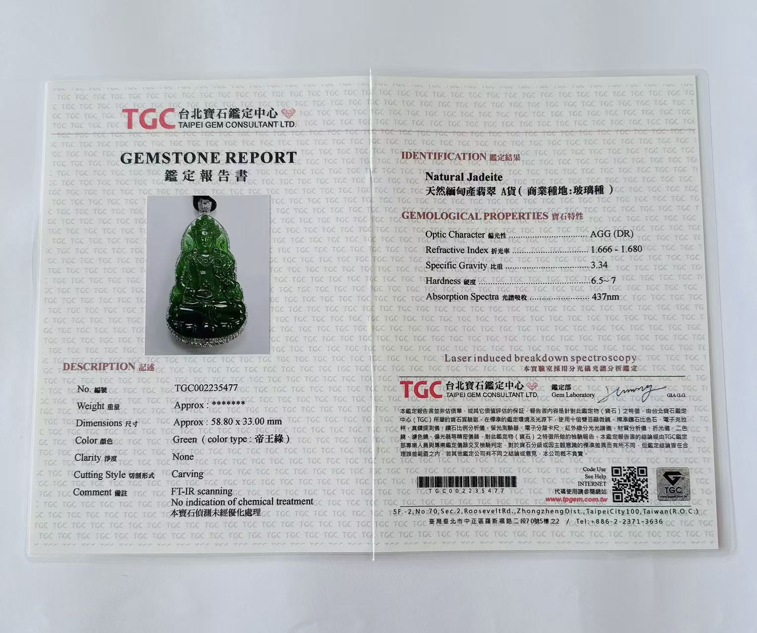 附台北寶石鑑定中心(TGC)鑑定報告書《編號:TGC002235477》