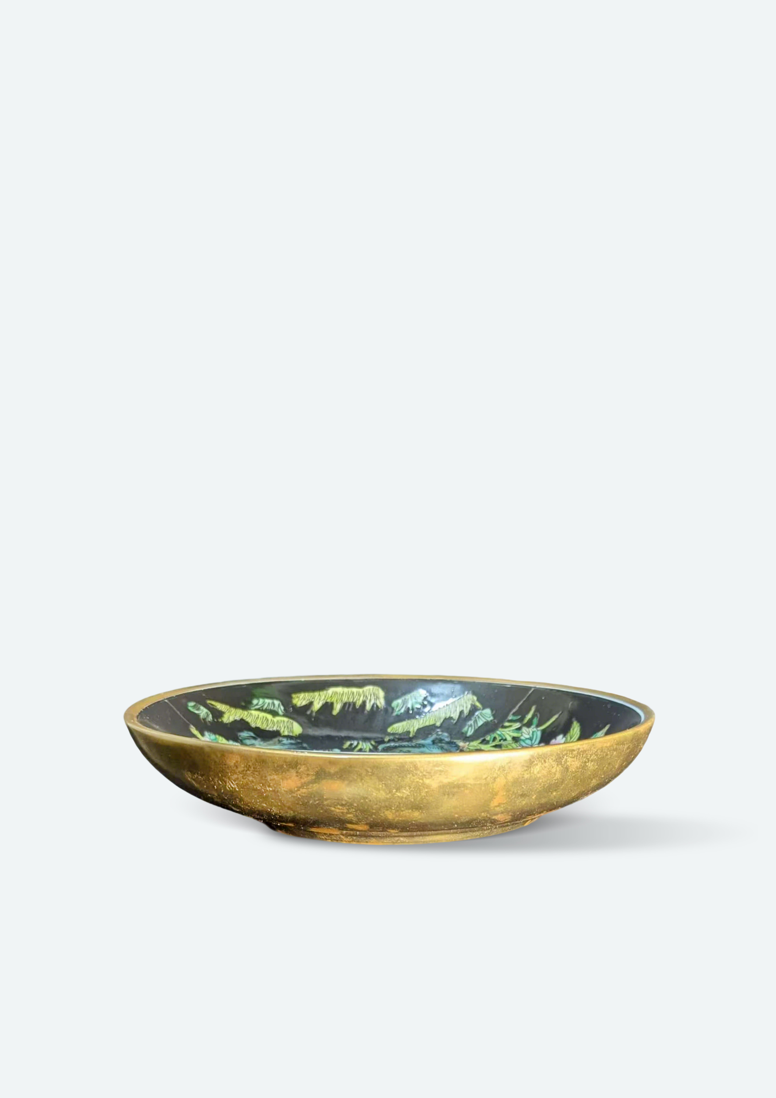 藏 品:清乾隆 墨地粉彩包金鳳凰花鳥紋盤