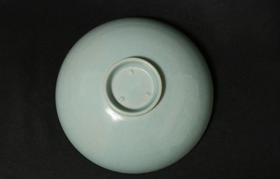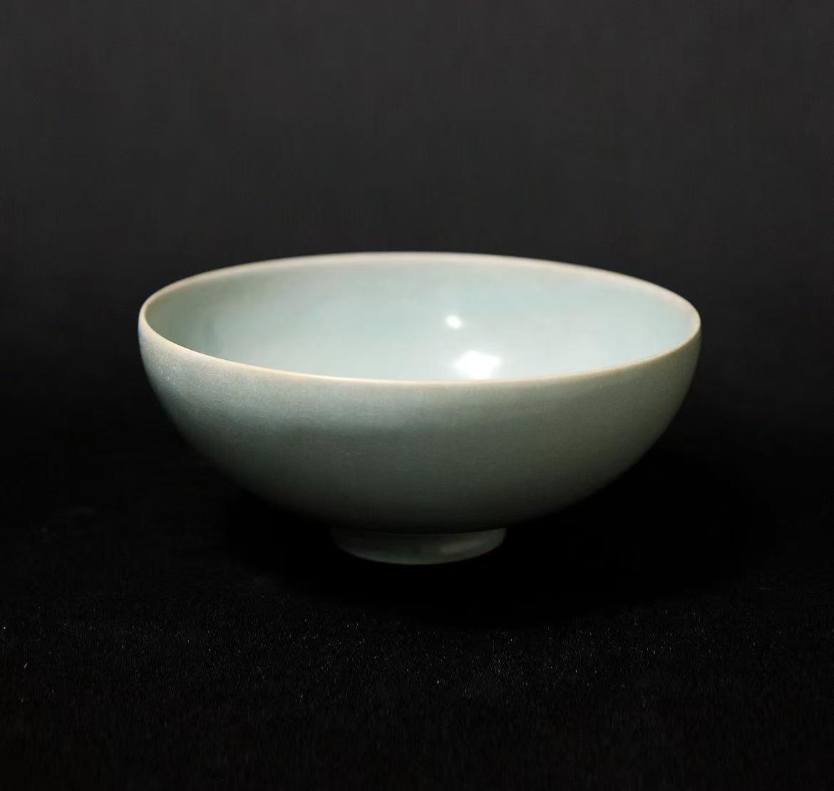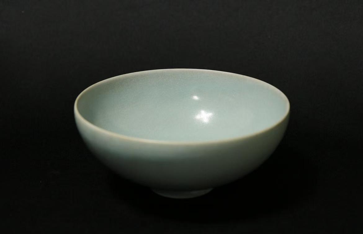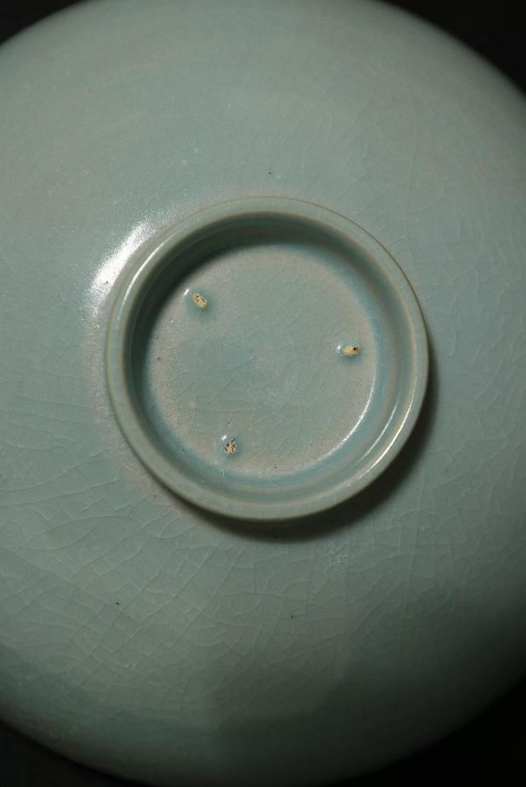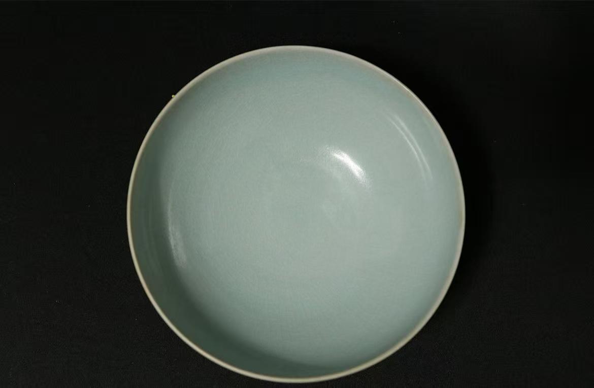 此器為宋代汝窯燒制的瓷碗,汝窯乃宋代“五大名窯”(汝、官、哥、鈞、定)之首,憑“釉色天青如空、開片冰裂似玉、胎質薄堅若瓷”冠絕古今。此件汝窯碗作敞口、弧腹、圈足之經典形制,線條婉轉流暢,器型端莊素淨。通體施天青釉,色澤取法自然——“雨過天青雲破處,這般顏色做將來”(傳說宋徽宗對汝窯釉色的禦批)。釉色澄澈空蒙,如春日晴空初霽,又似秋水凝波漾光;釉層勻淨瑩潤,似凝脂裹器,觸手柔滑若酥;釉面或有細微開片如“蟬翼紋”細密精巧,胎呈香灰色,質地細膩堅致,胎體輕薄卻韌性十足。汝窯存世器物極罕,加之宋代“文官治國”背景下,汝窯作為宮廷用瓷的“禮制屬性”,令此碗不僅是工藝傑作,更是宋代美學、哲學與權力秩序的物質載體。